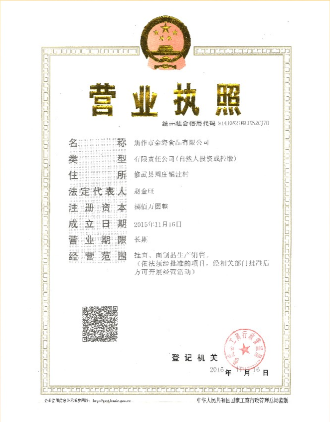 原修武縣金海掛面廠更名為焦作金海食品有限公司 作者: 管理員 發(fā)布時(shí)間: 2015-11-25 點(diǎn)擊: 9230 |